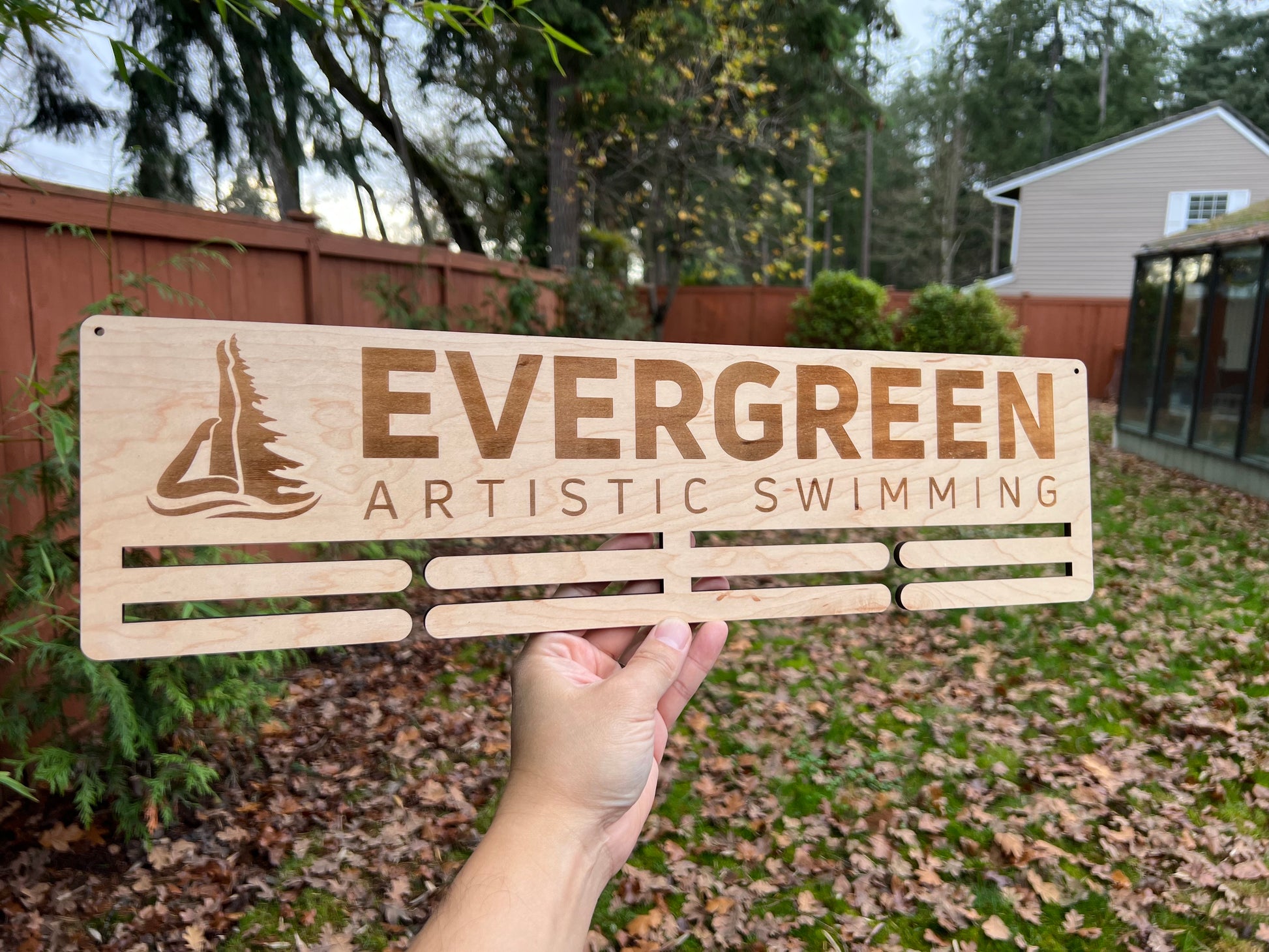 This product is laser cut and engraved. It can be fully customized. This design can be made of Maple or Cedar. Options for material and number of slots can be selected. Default size is about 20 inches long.